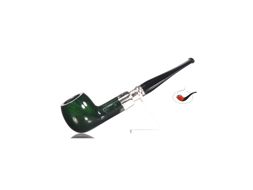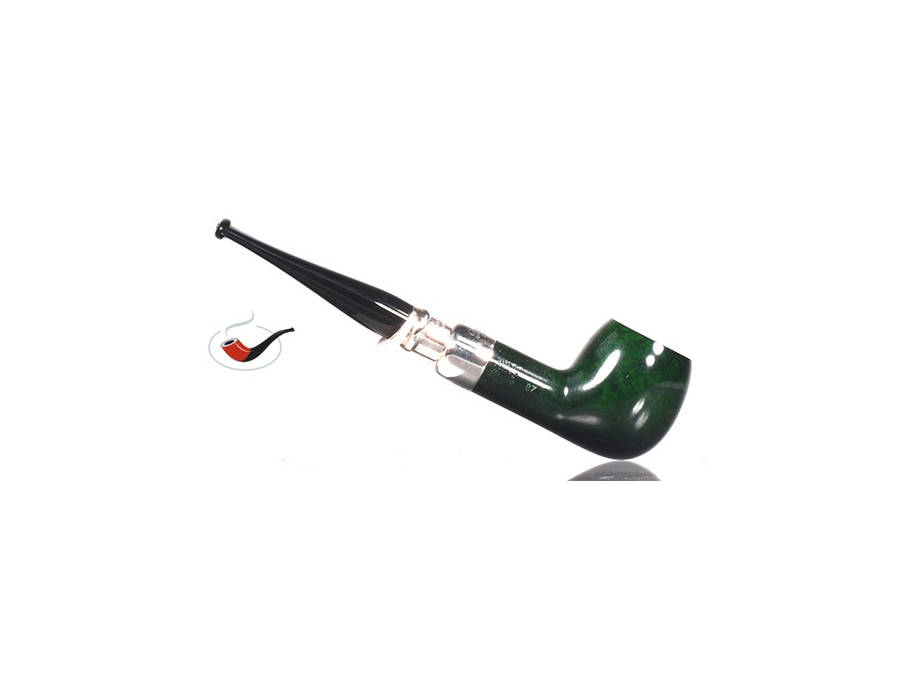 Dýmka Peterson Green Spigot. Dýmka je v hladkém provedení se systémem spigot, který je vyroben ze stříbra. K této dýmce obdržíte certifikát, který Vám přináší další výhody. Fotografie zobrazují originál dýmky Peterson Green Spigot, který po objednání obdržíte.