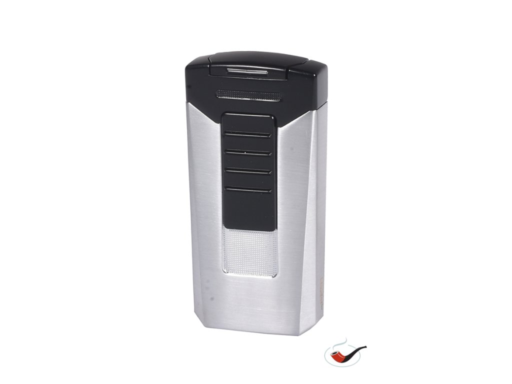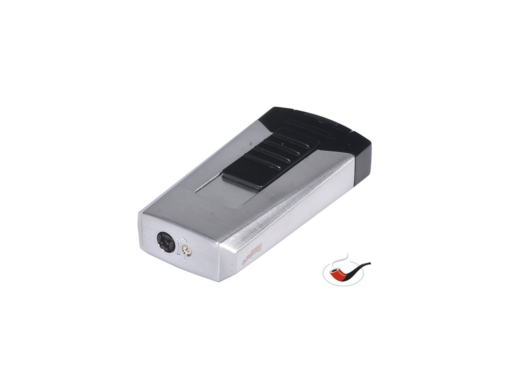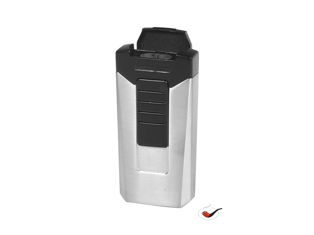 Plynový doutníkový zapalovač 2 turbo v černo-stříbrném provedení.