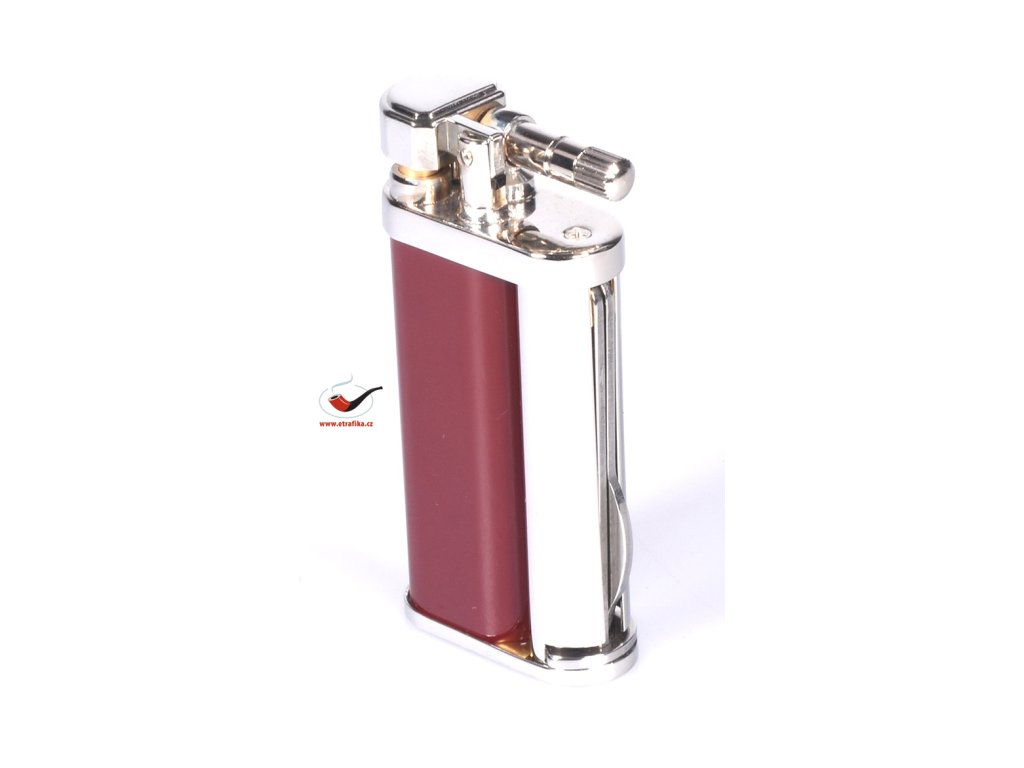 Dýmkový zapalovač kamínkový vhodný pro leváky i praváky. Provedení chrom v kombinaci s červenou.